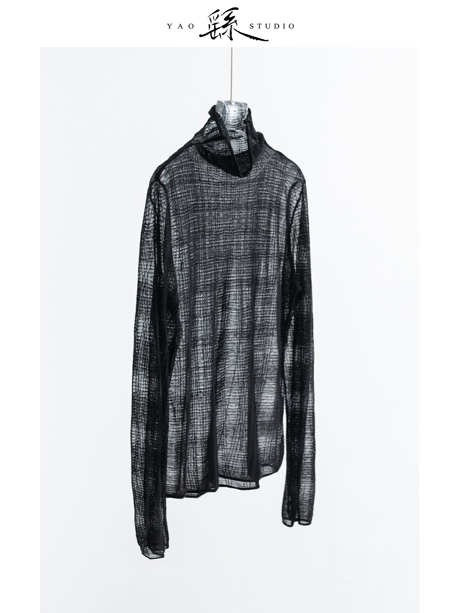 Lightweight See-Through High-Neck Tee – Breathable Viscose Blend, Everyday Layering V015