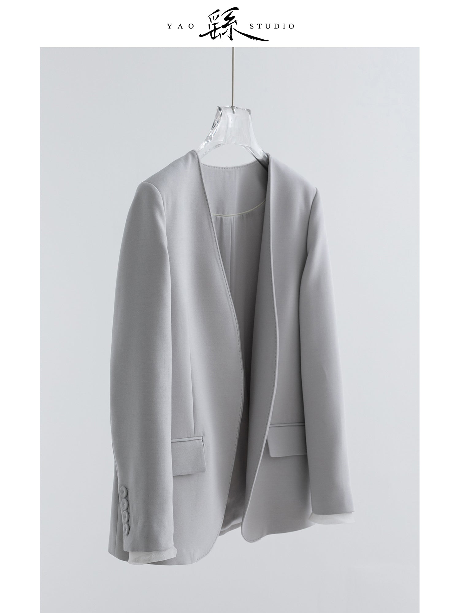 Luxury Silk-Cashmere Blazer – Cutaway Open Front, 100% Silk Facing | Moon-Grey V017