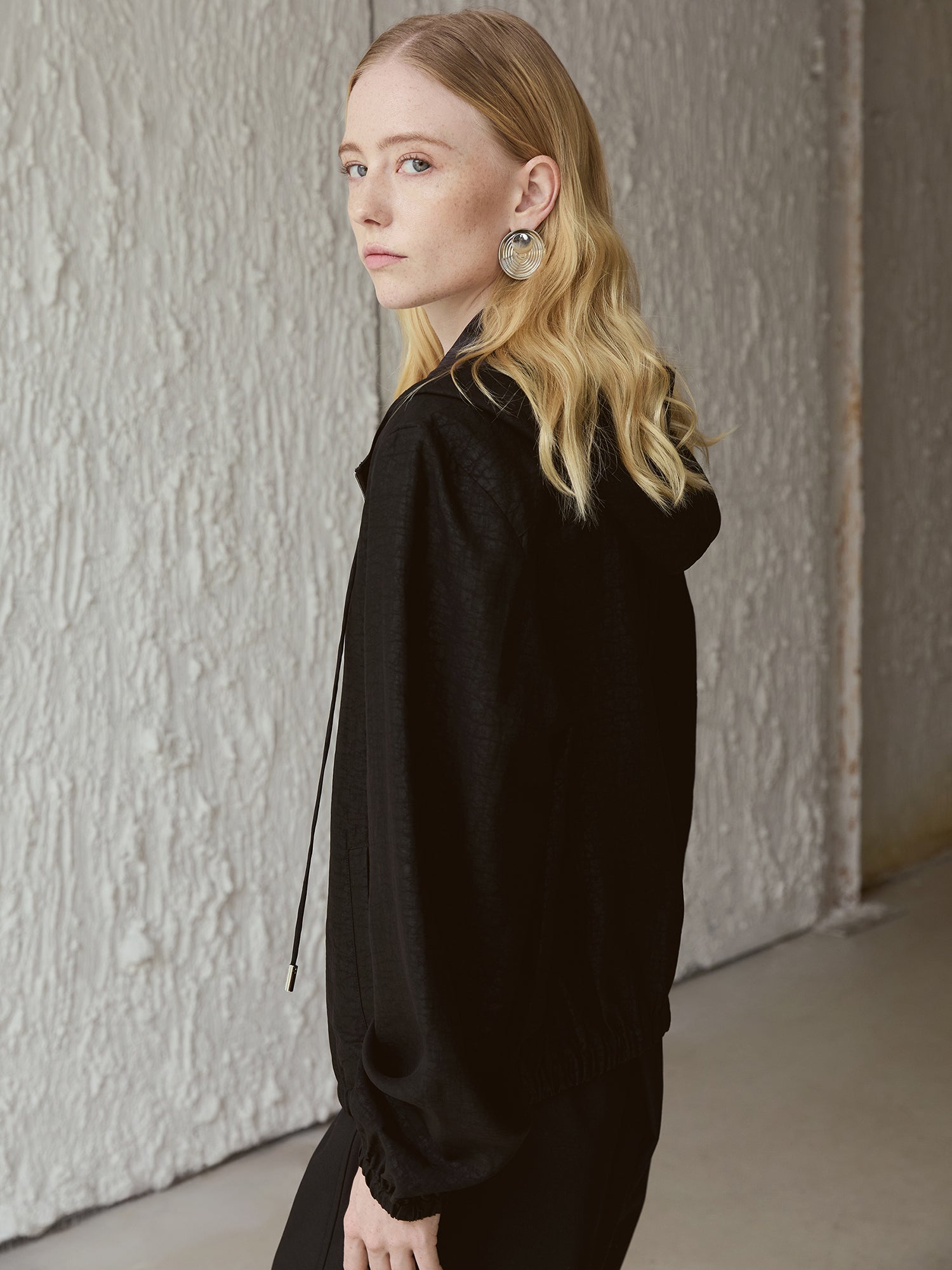 Silk Hooded Jacket — 100% Mulberry Silk, Zip-Up, Smoky Black V024